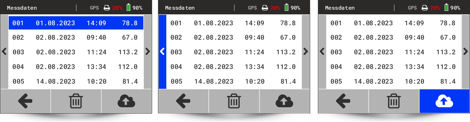 HMP PDGpro - Display Messdaten Speicher, blättern, auswählen